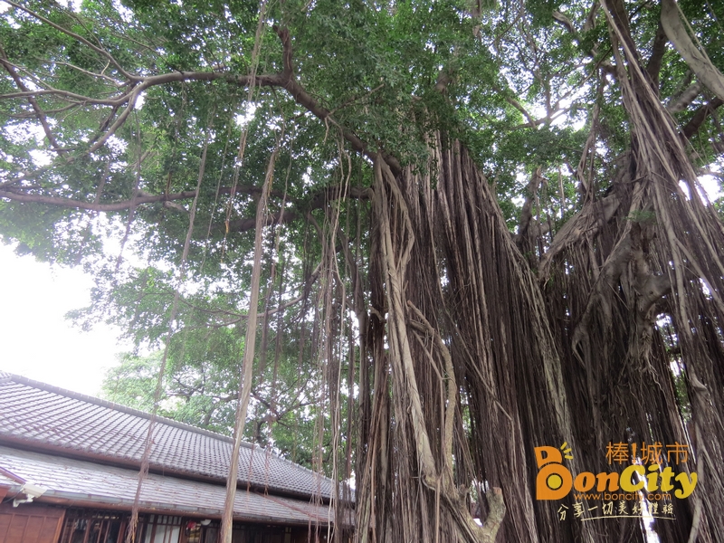 靠近園中心走去,不可錯過的就是那有三層樓高的老榕樹了,枝枒盤根形成自然獨特的氣根廊穴,佇立在文學公園的展覽區中間,